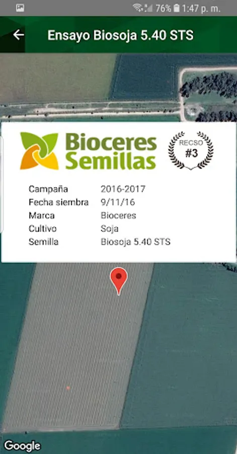 Bioceres Semillas is an application with an intuitive and agile menu that allows easy access to Bioceres seed catalogs. The catalogs show relevant information of each seed and a list of geolocated field trials of each seed with the behavior achieved.
