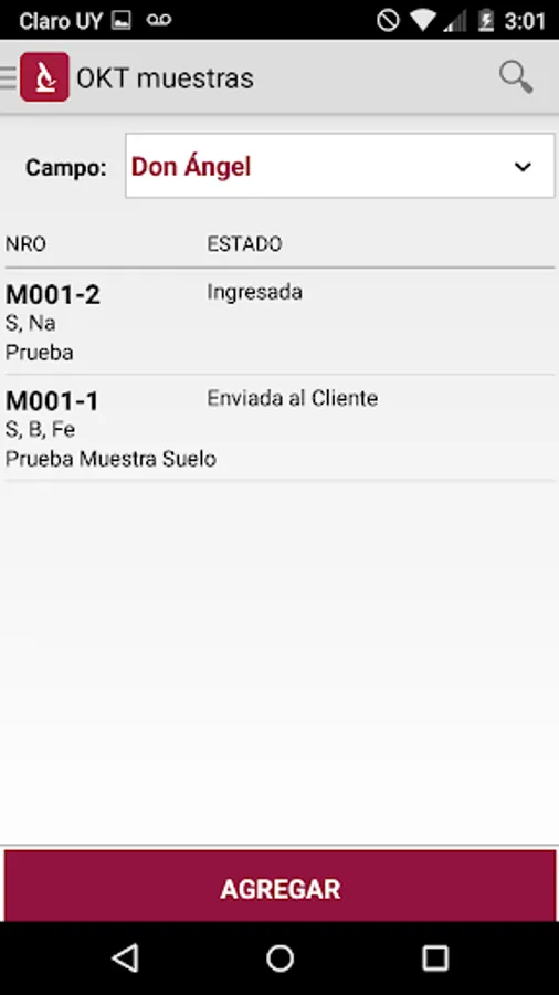 OKT samples is an application that allows the time of taking a sample (plant or soil) generates a sample No., recording georeferecnia thereof.