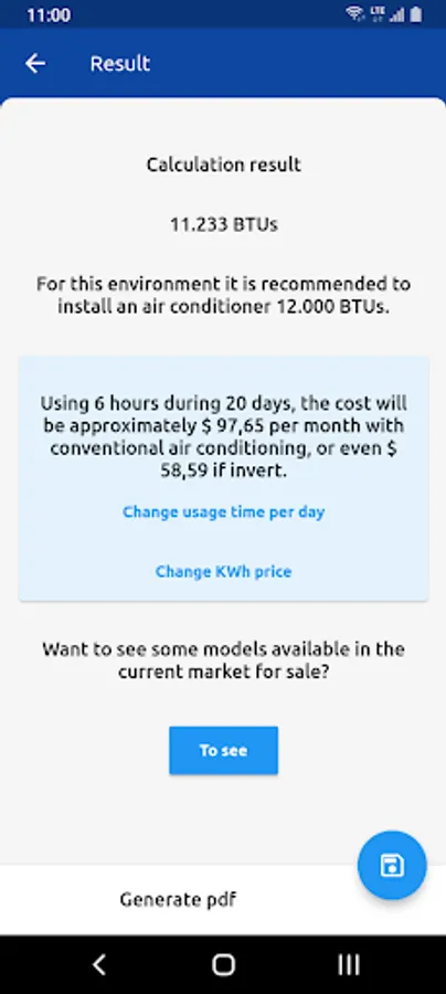 This application is a strong tool to calculate the air conditioning power needed for a given environment and discover the amount spent when using it, based on the measurement properties of the place where the device will be installed. You can even select the type of lamp used and the size of the window, to receive a more accurate result.