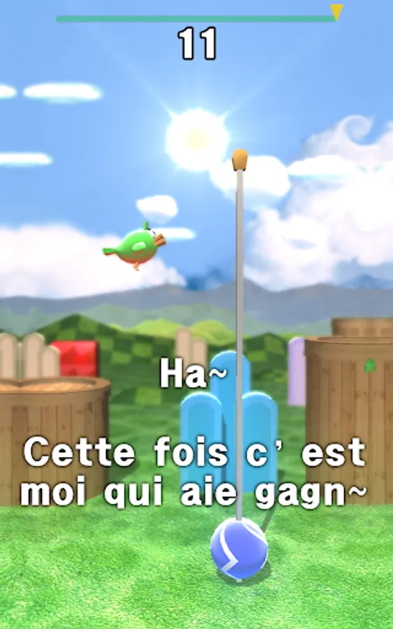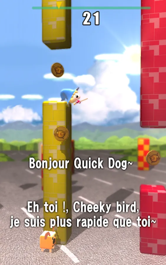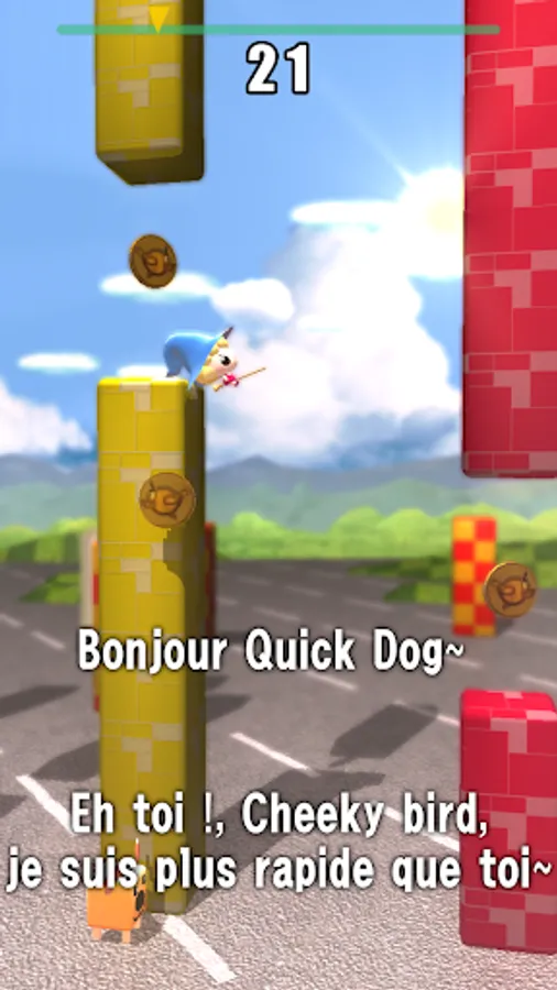 Little witch: What? What a laugh! Let's compete who can avoid the pillar better.