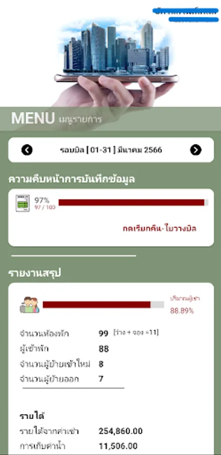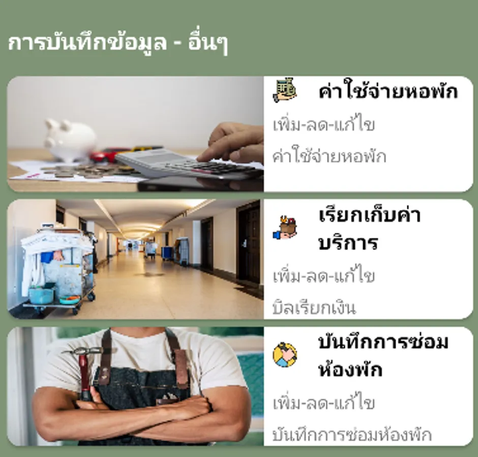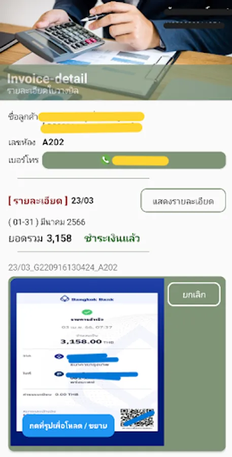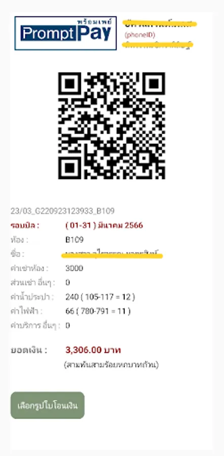 - Tenants can check the details of the rent. And able to create a Qr Code to transfer money through the PromptPay system, ready to send the slip to the caretaker / owner of the dormitory for inspection
