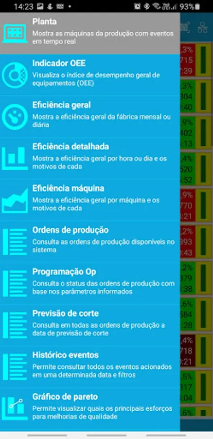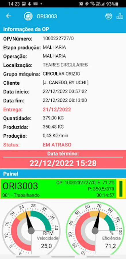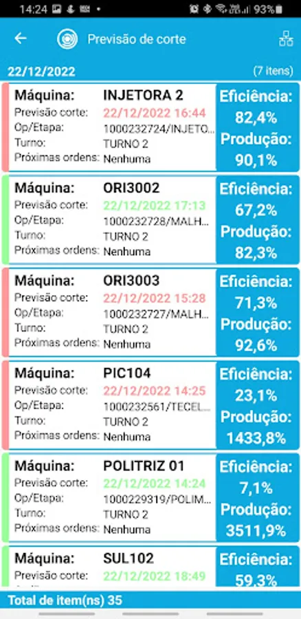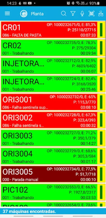 - Each machine brings extra information about the current event, production order, item, customer, programmed quantity and quantity produced;