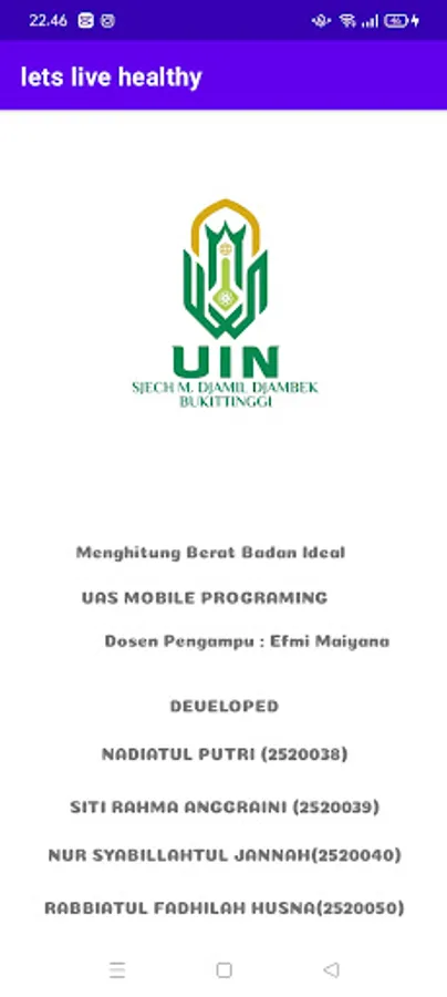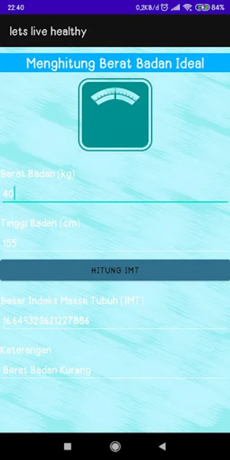 This application can find out the type of body weight and find out the body mass index and description of the type of body weight