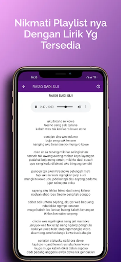 Want to sing campursari songs properly? Our application is equipped with a dangdut campursari song lyrics feature which allows you to easily follow the lyrics when listening to songs. Add a personal touch to your music experience by singing your favorite campursari songs with accurate lyrics.