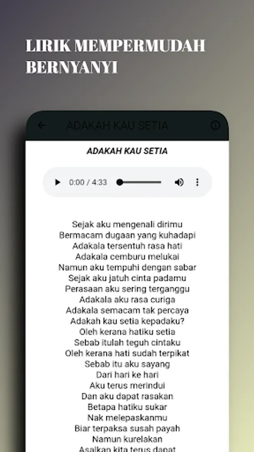 4. Malaysian Song Lyrics: Don't worry if you don't know the lyrics of your favorite Malaysian songs by heart. The app provides complete lyrics for each song, so you can sing along with your favorite artists or immerse yourself in the deep lyrics.