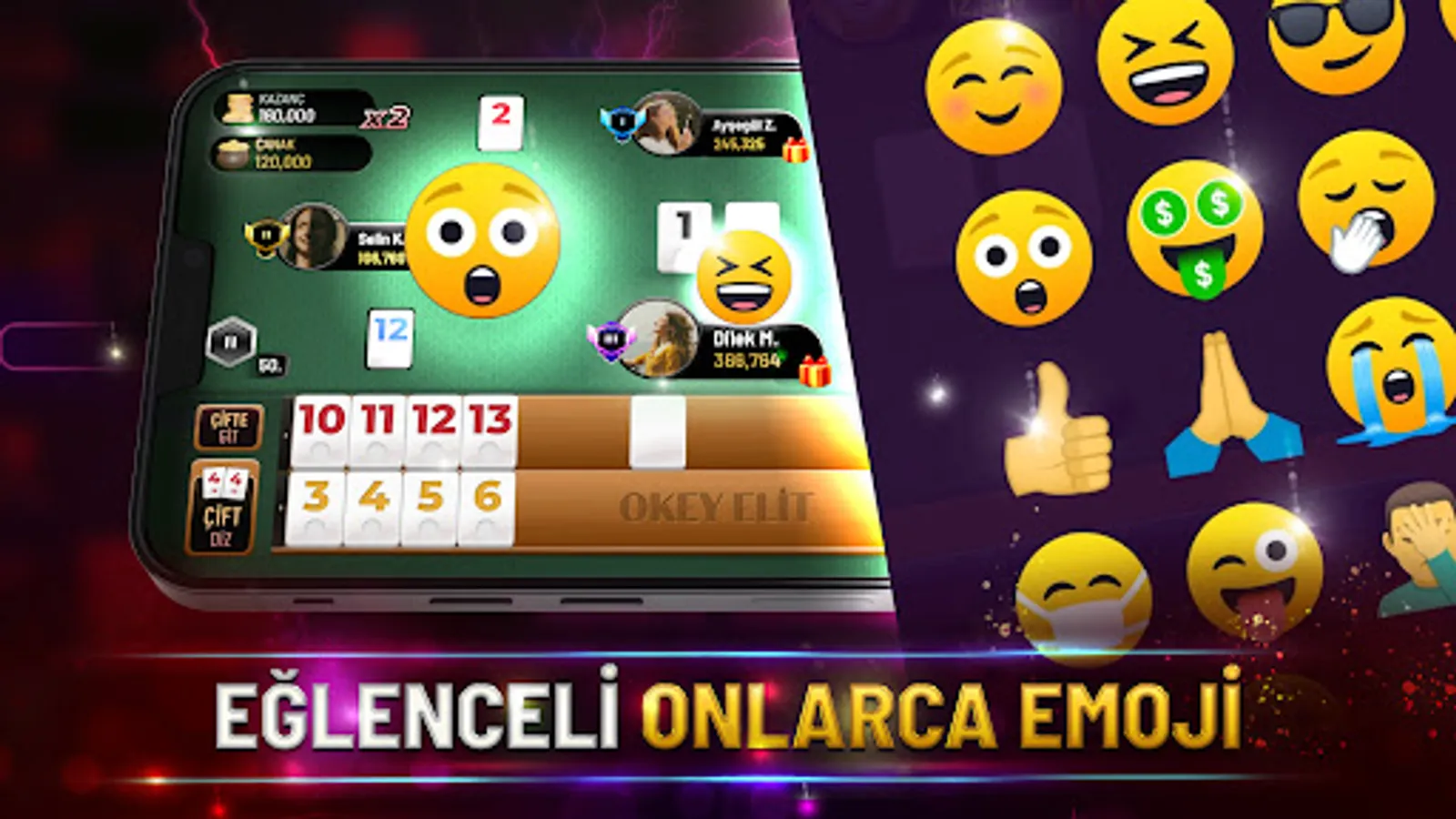 Okey is a game similar to Rummy for two to four players. Its target is to build sets of three or four of a kind or sequences. The game is played clockwise and the beginner has to discard his additional piece. Each player whose turn it is must take a piece, either the last open one or one from the next covered stack and he also has to discard one piece. As soon as the player whose turn it is has arranged his pieces in sets of three or four of a kind