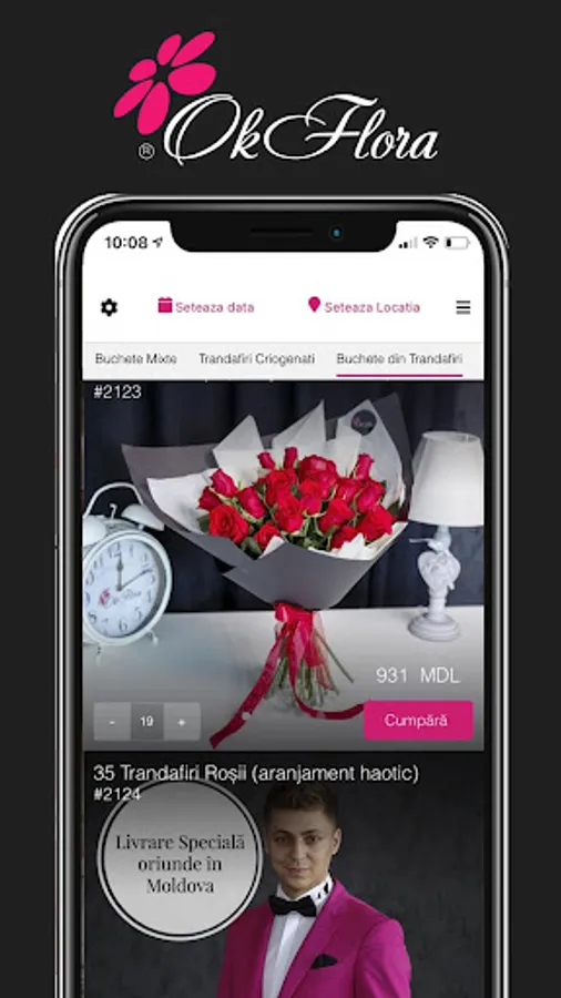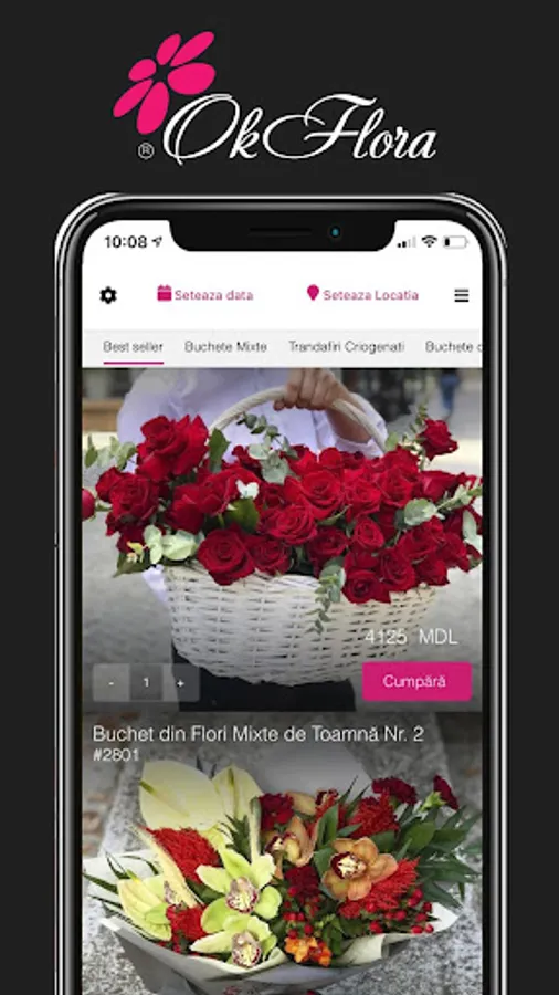OkFlora is the first flower shop in your smartphone, which offers flower delivery through its own couriers in Chisinau and the suburbs within 2-4 hours after placing the order, and throughout Moldova in 5-6 hours. Why OkFlora? Because we offer Special Delivery through our couriers in pink gloves and white gloves and butterfly. The OkFlora Moldova application has a wide range of bouquets, compositions and other gifts. Rich assortment of fresh flowers: roses, tulips, freesia, exotic flowers, etc. There is no lack of assortment of immortal roses, ie cryogenic roses. We offer flower delivery 24/7, placing orders online for the same day available until 21:00. Download the OKFLORA application and benefit from unique products and services in the field of floristry. OkFlora - The Gesture Matters!