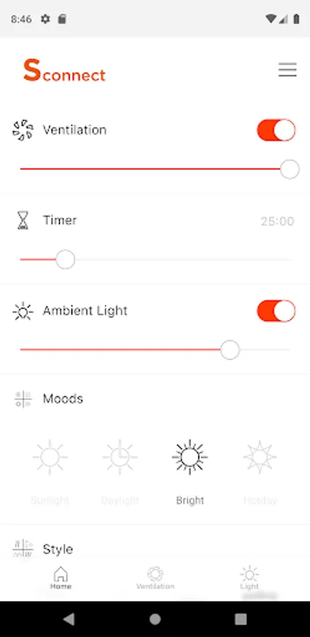 • Style: There are 4 style modes available in style. With the Add button you can create your own ventilation mode.