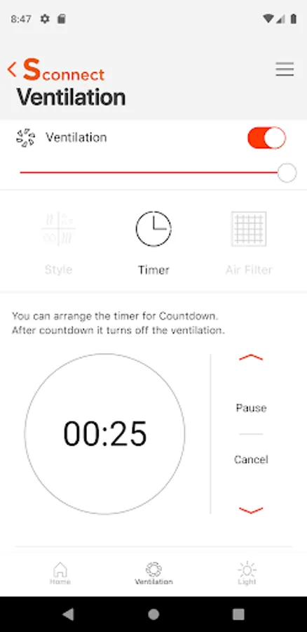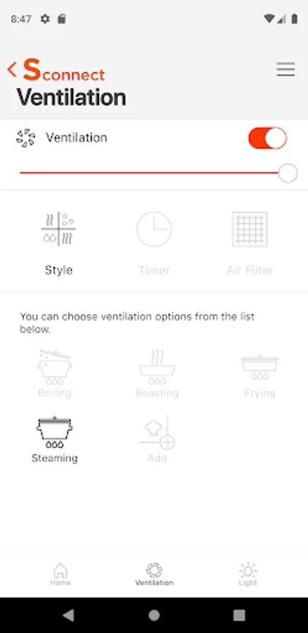 • Ventilation : You can adjust the ventilation speed of the hood by using the Ventilation function.