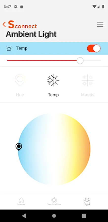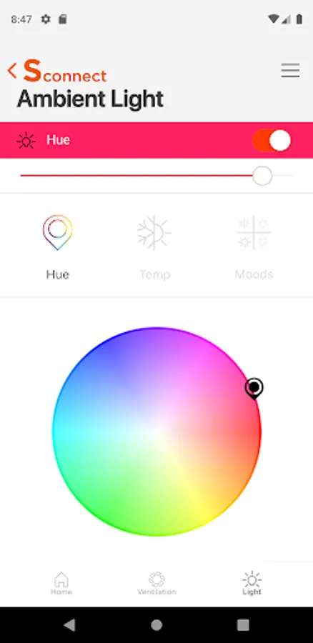 • Lighting : You can adjust the color of the hood through the application. Hue function is available in infinite colors. You can select the desired color and adjust the brightness. In the Temperature function you can adjust the color and brightness according to the color temperature.