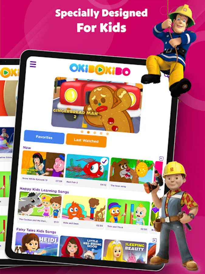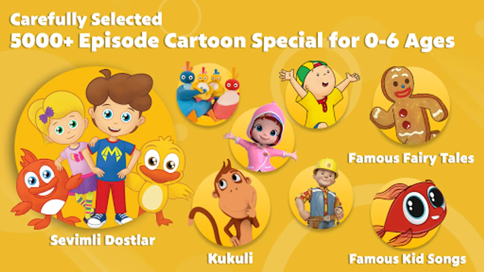 Favourite animated series including Caillou, Ready Jet Go, Fireman Sam, Strawberry Shortcake, Brave Birds, Mölang, Poko, Monk, Poppy Cat, Bob the Builder, Louie, Monster Math Squad, Mig Said, Ella Bella Bingo, Jungle Tempo, Gazoon, Twirlywoos; the most popular kids' songs, Sevimli Dostlar, Agu TV Baby Lullabies, Adisebaba Songs, Kukuli, Edis and Feris, and the most popular classic fairy tales are on Okidokido!