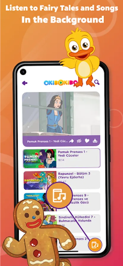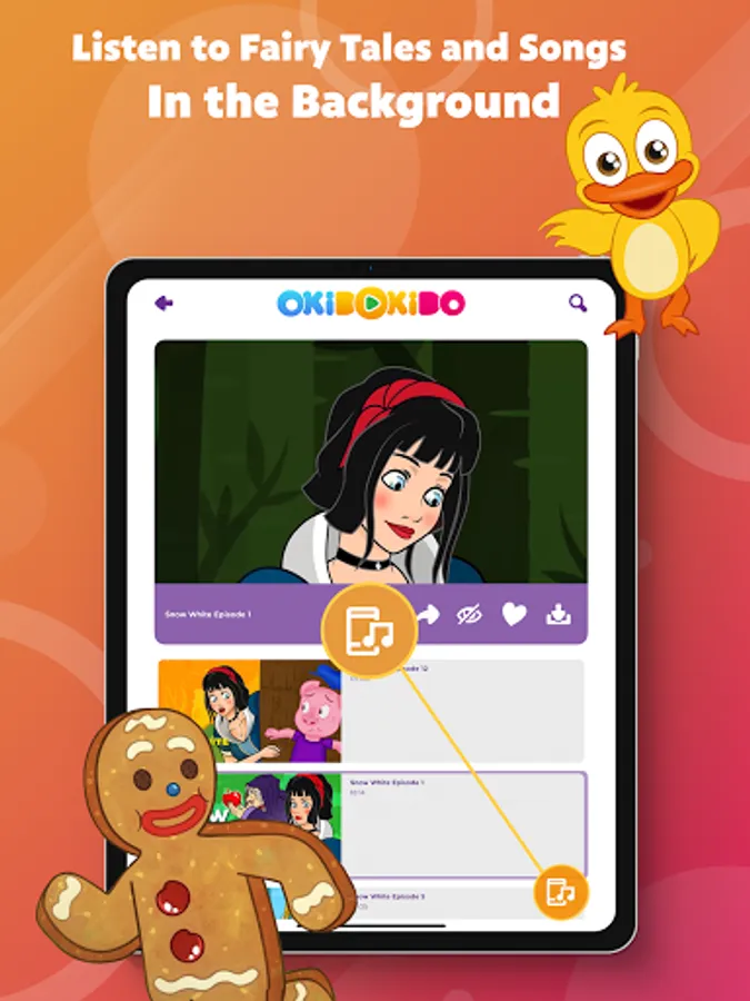 With the feature of playing in the background, Okidokido songs and tales continue to play while you are using your phone. With the block button, you can send to the removed videos the content that you do not find appropriate for your child's age.