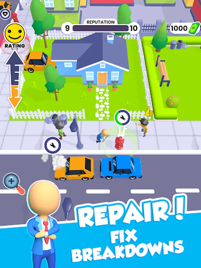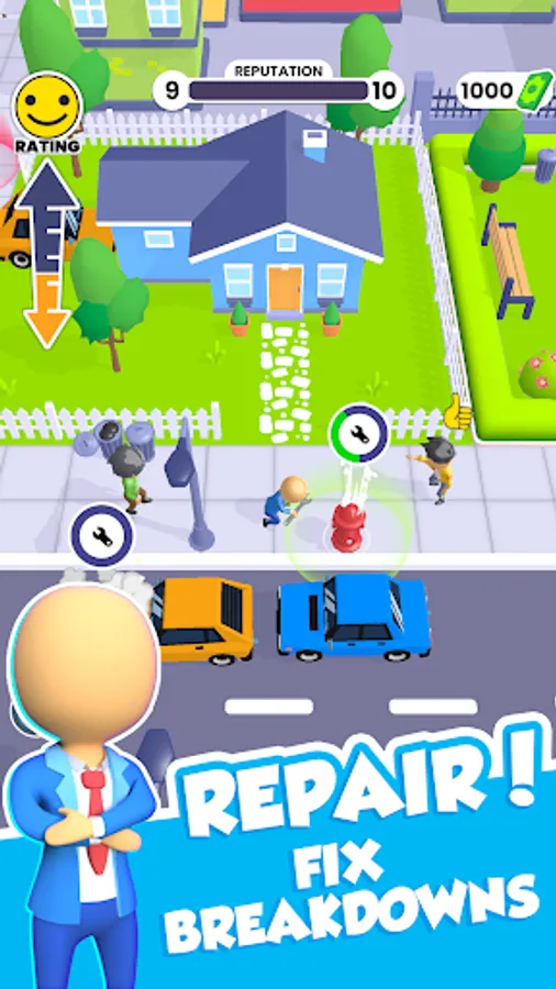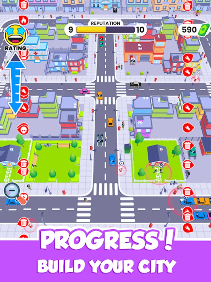 Becoming mayor is not an easy task. You need to earn the love and trust of the citizens so that they choose you. You start in a small area of the city. You need to clean the streets of garbage, repair infrastructure breakdowns, and plant trees to improve the lives of citizens.