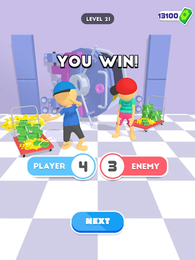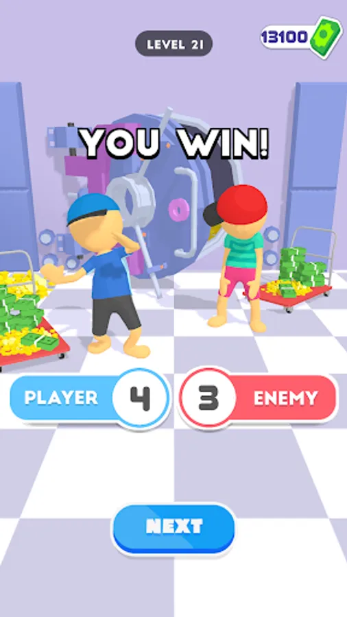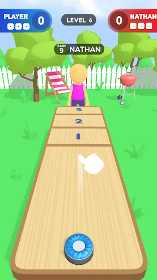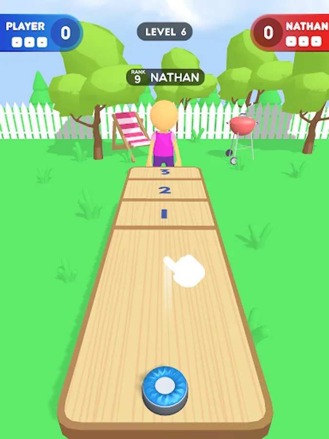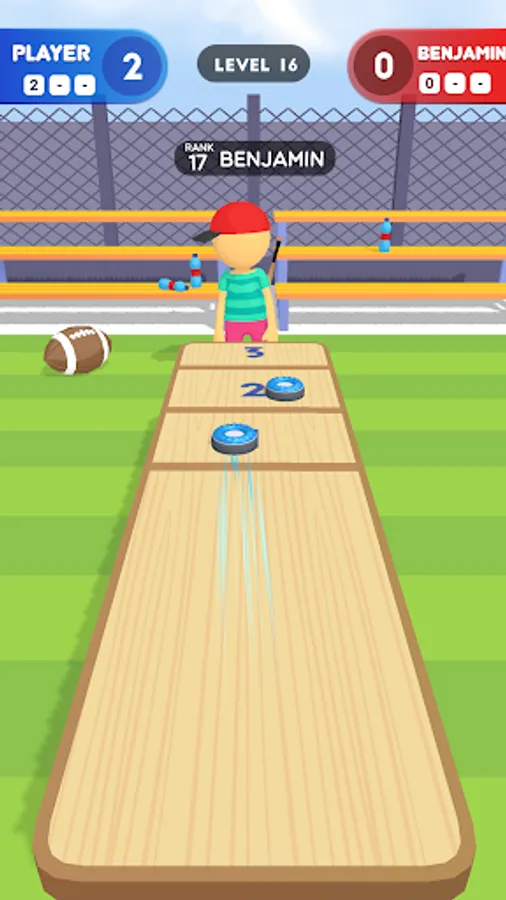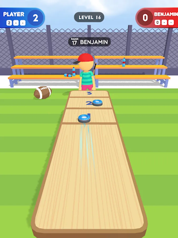 You need to push the pucks so that they stop at the highest number. You and your opponent have 3 attempts each. The one who scores more points wins.