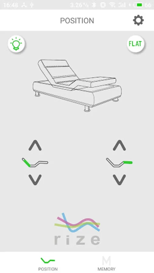 The Rize Clarity application allows you to operate your motion bed from your smartphone or tablet when connected to Bluetooth.