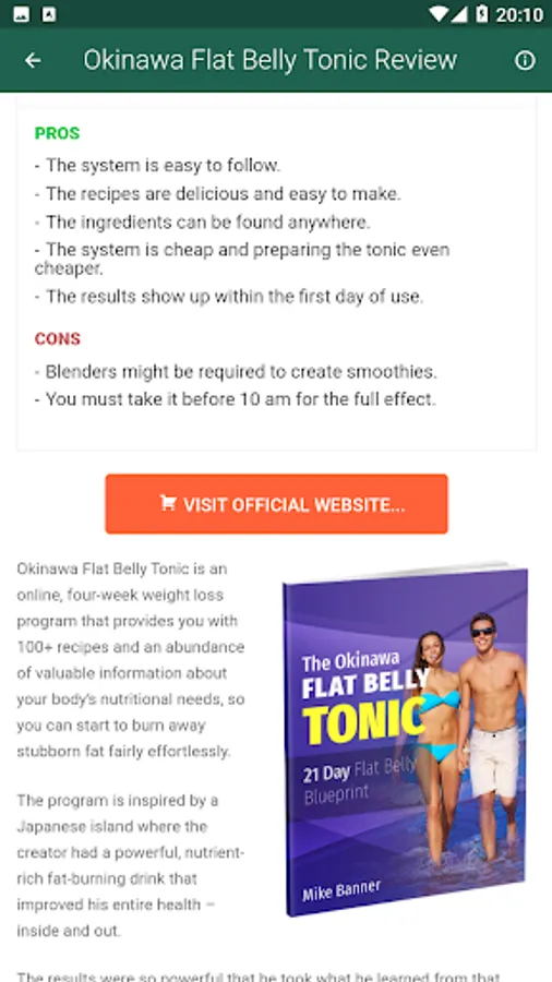 Okinawa Flat Belly Tonic is an online, four-week weight loss program that provides you with 100+ recipes and an abundance of valuable information about your body’s nutritional needs, so you can start to burn away stubborn fat fairly effortlessly.