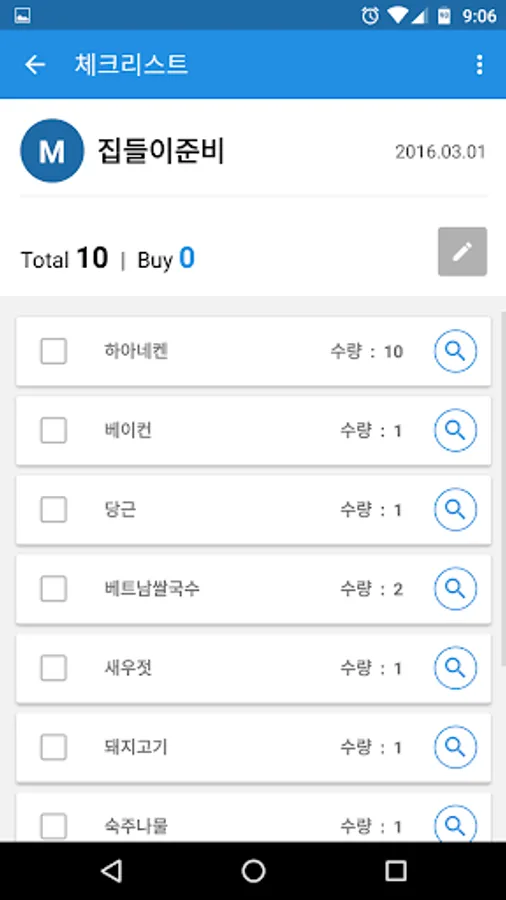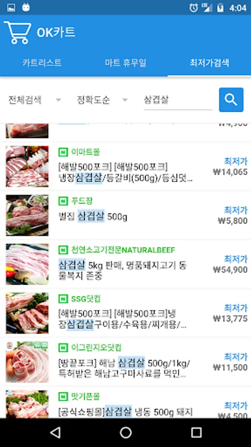 -On the checklist screen, you can search for the lowest price for each mart for the items. Make sure to check the price information through the Internet search for the lowest price before purchasing items and purchase.