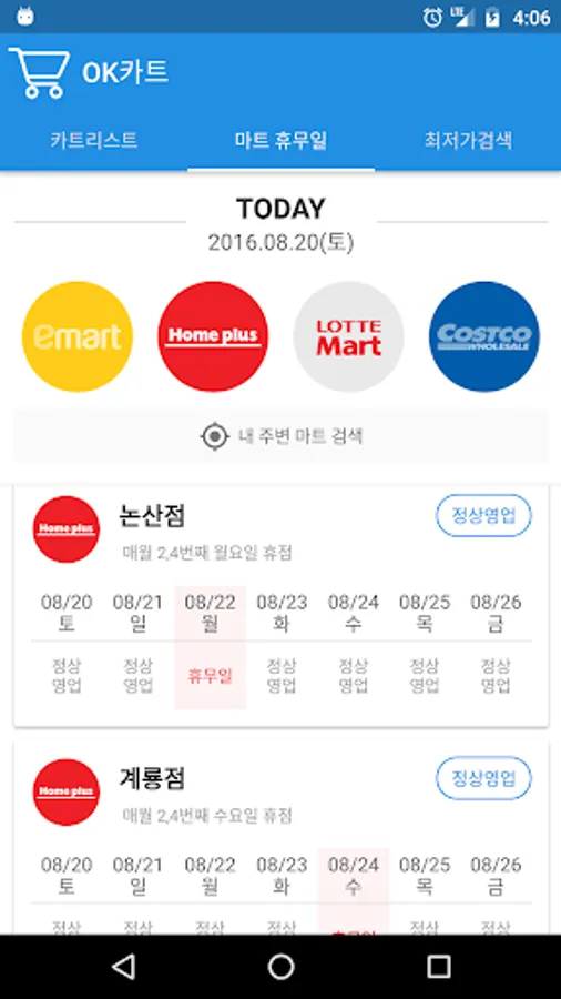 1) Are you curious about the holidays of hypermarkets (E-Mart, Homeplus, Lotte Mart, Costco, etc.)?