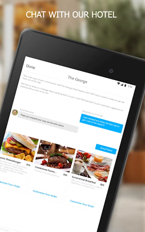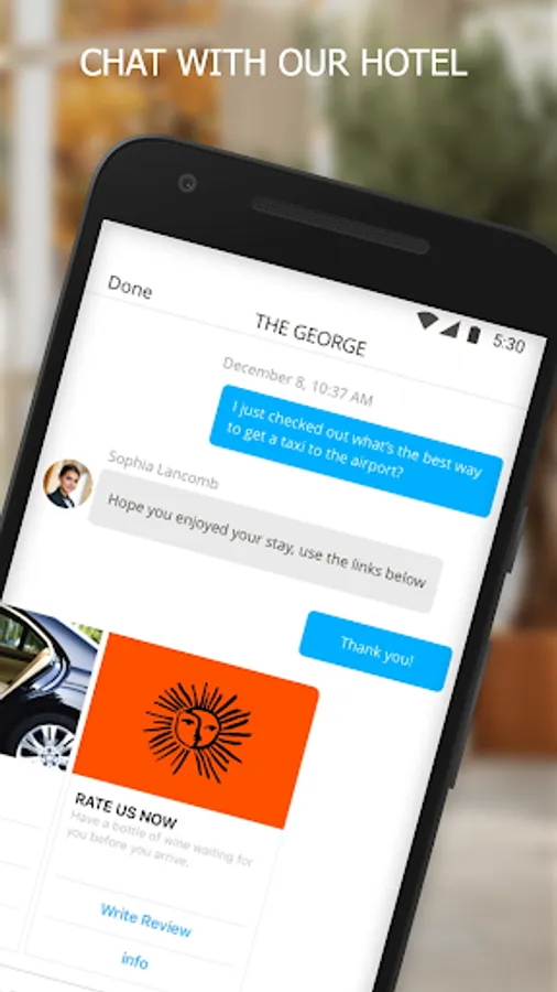 With this app, your smartphone also doubles as a key card. And you can chat with us at any time before, during or after your stay if you have any questions or special requests.