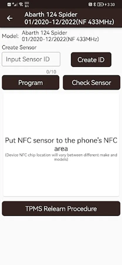 An NFC tool for automobile tire pressure sensor, which can be used for sensor programming and sensor status reading.