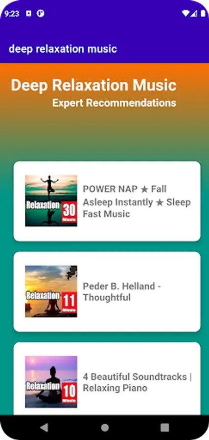 This app is ideal for people who are tired, stressed, with insomnia and a hard day at work. You will relax with smooth music, beautiful songs used to relax and relieve stress. Close your eyes, wear headphones (For better results) and choose one of the sounds and relax or sleep better.
