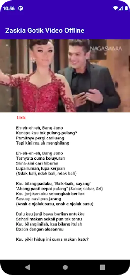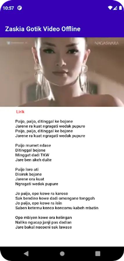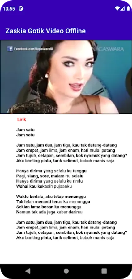 The Zaskia Gotik Video application can be played without using an internet network or offline which is also equipped with lyrics.
