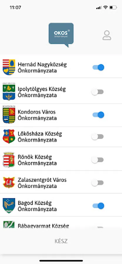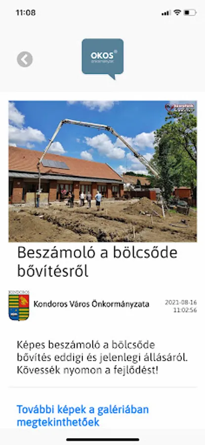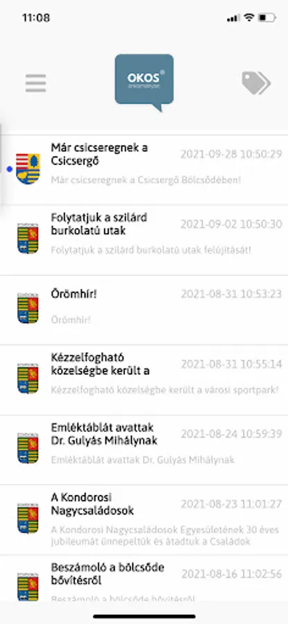 In addition to the notifications, the coat of arms of the local government is also displayed, and by selecting the coat of arms, all notifications of the given local government can be queried, ie a local government has its own page and news feed.