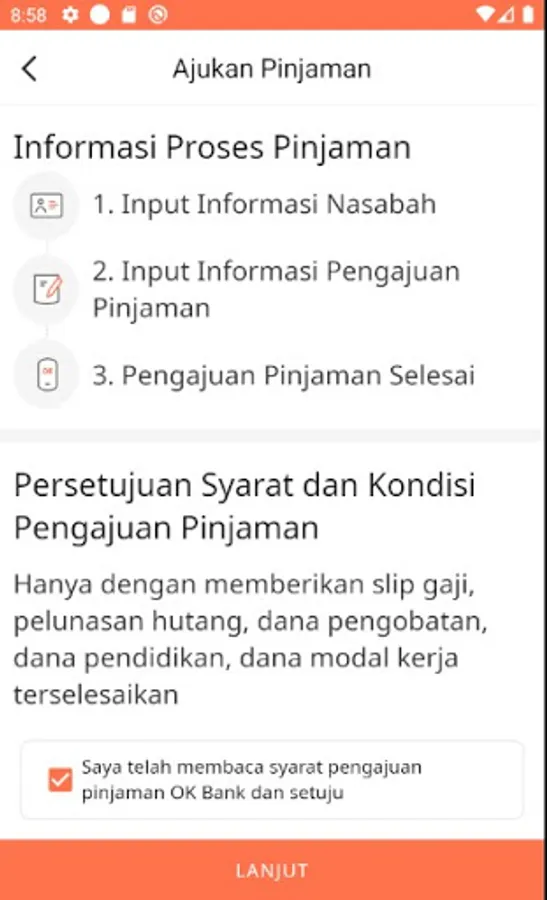 OK! Bank KTA is an official product of OK BANK Indonesia which is registered and supervised by the Financial Services Authority (OJK) with a decree S-104/PB.322/2019. We ensure your security and privacy.