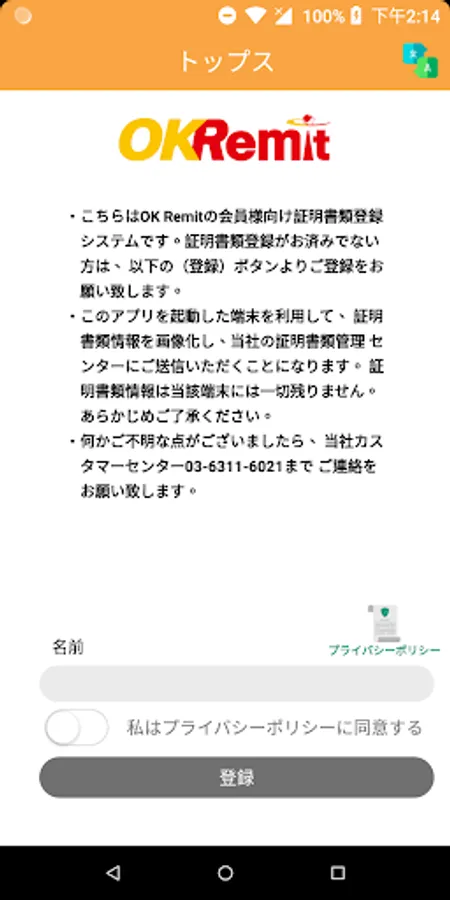 Now you can do it for free! OK Remit My number proof photo app for exclusive use. By having you photograph "confirmation documents (documents and personal identification documents that my number can confirm)" with application,