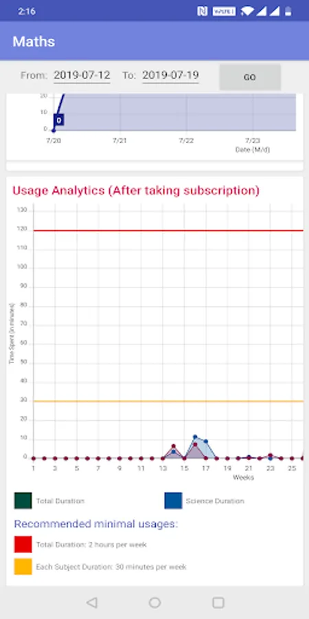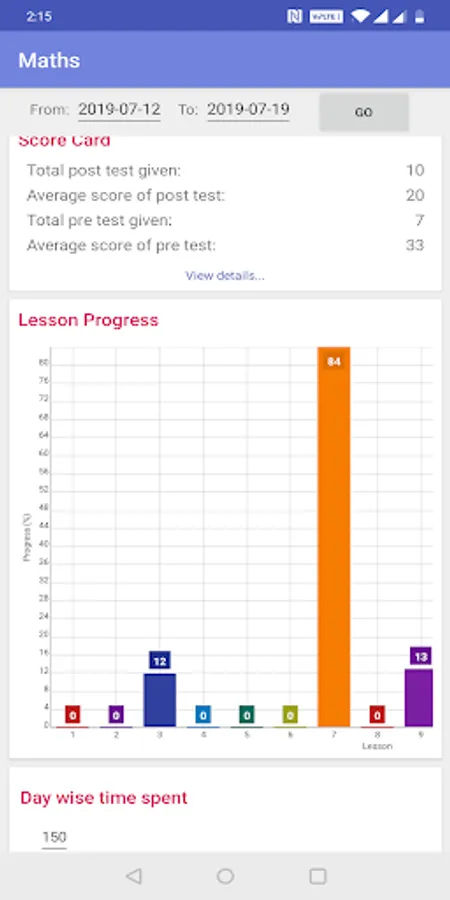 Look at day-by-day statistics to monitor that your child/student is using the app