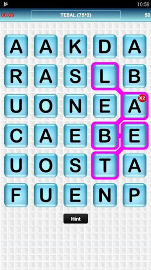 Temukan kata kata tersembunyi dengan mengubungkan huruf-huruf yang berdekatan. Tiap kata tersusun dari 3 sampai 8 huruf, dan terdaftar di Kamus Besar Bahasa Indonesia (KBBI).