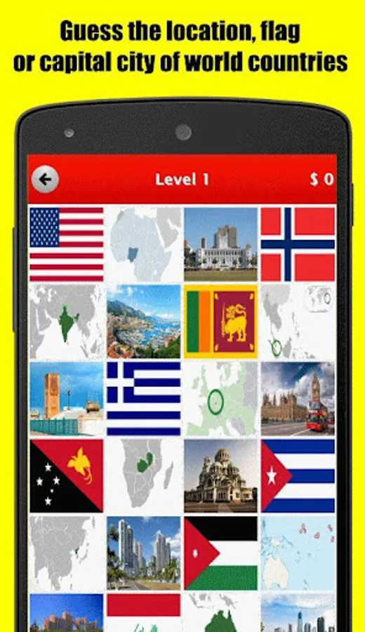 ★ Guess hundreds of geographical location maps, flags, and capital cities of countries around the world