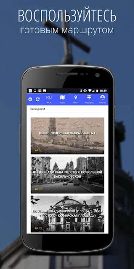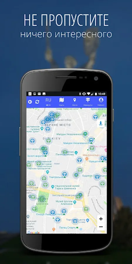 Thanks to our application with audio excursions, your walk around Kiev will be as informative as possible. Making memorable photos on the background of attractions do not be lazy to know their history. And no matter who you are: a guest of the capital or a local resident. Kiev is a city with an interesting and rich history.
