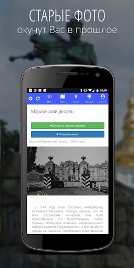 The best Kiev scholars and historians worked on audio tour texts. They used old photos of sights in the stories, thanks to which you will not only hear, but also see how everything looked before.