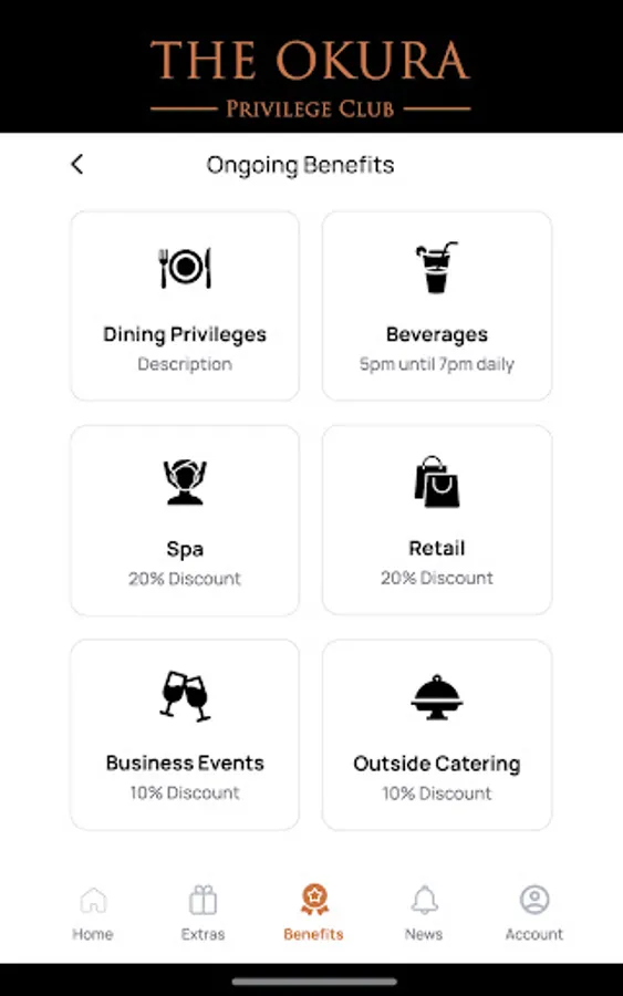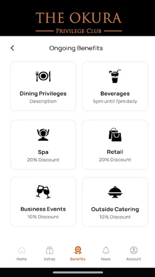 1. My Benefits - Vouchers or certificates available to use or redeem (once redeemed, app will show the voucher as 'Used')