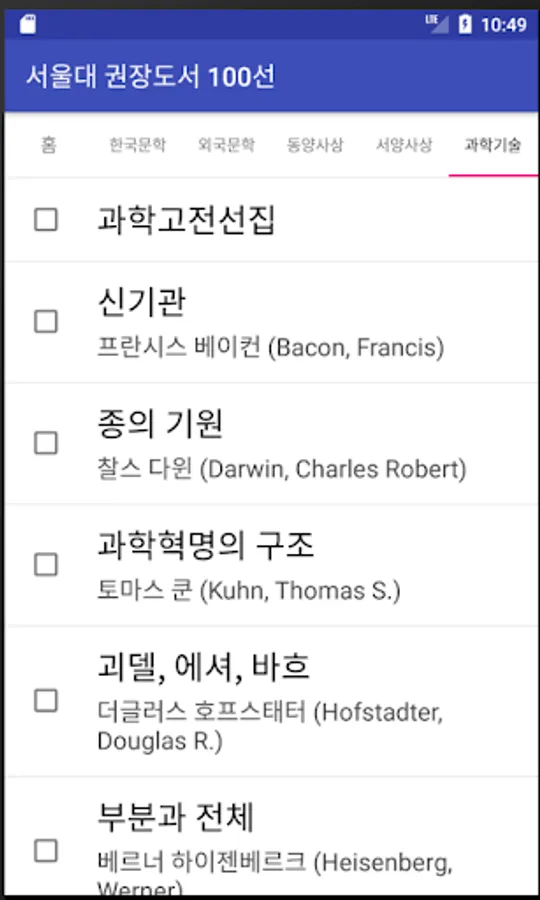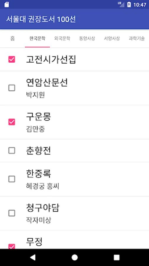 The 100 Recommended Books app checklist for a Seoul National University student provides at Seoul National University.