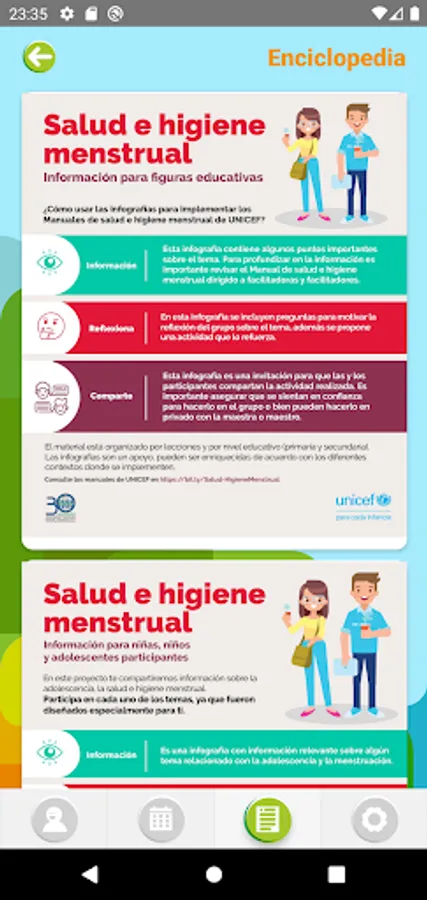Provides information about menstruation in a fun, creative and positive way that girls or adolescents receive through their cell phone.
