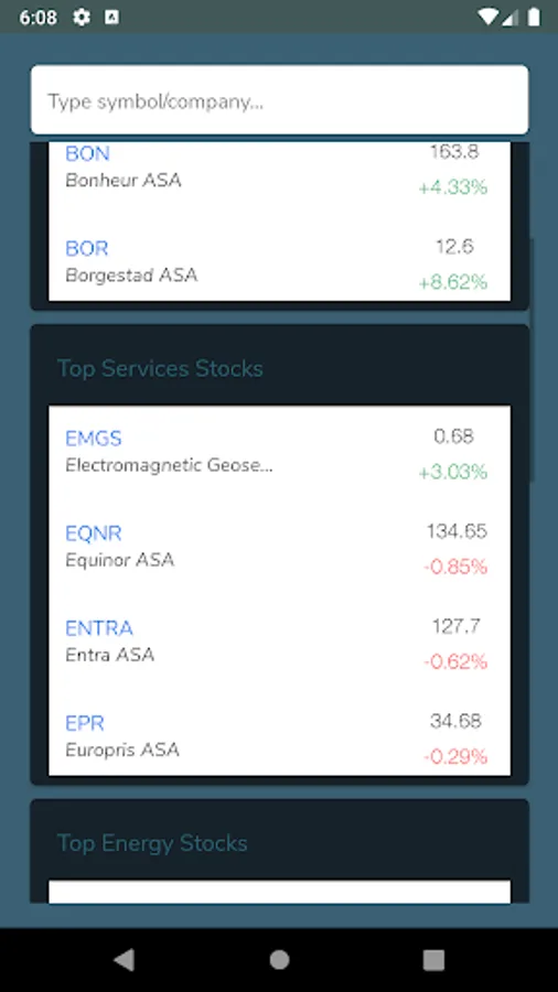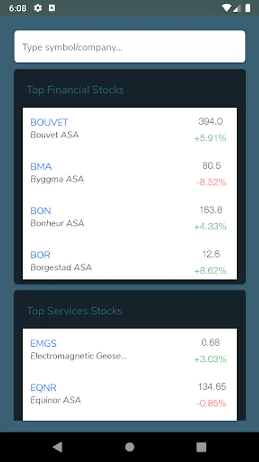 An app for traders who looks for simplicity. All of Oslo markets in one place! Updated stock prices and historic stock prices. Easy separation into interesting stocks in different sectors and categories. This app supports data from Oslo Bors, Stock Exchange