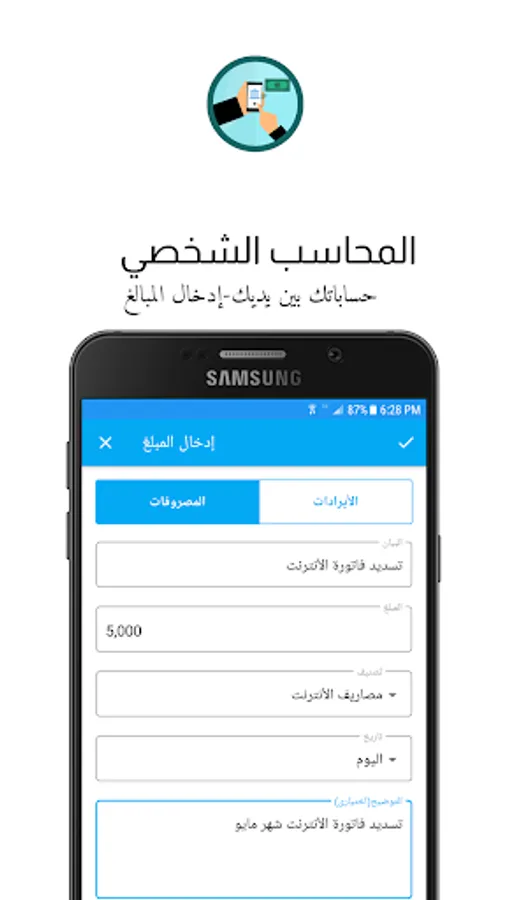 The application will help you to keep track of your income and expenses. It will also provide you with a quick overview of your total income or total expenses.