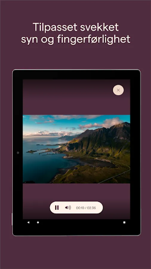 Watch video of the music you love put together with pictures of lived life, online and offline. Create the right moment with those around you or for yourself. Ease of use that takes into account good contrasts, small text, large icons and impaired dexterity.