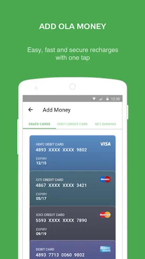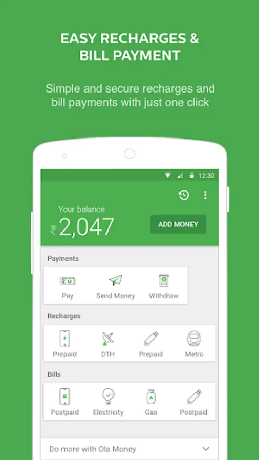 India’s easiest, fastest and safest - Ola Money wallet is here with all new user experience and one tap access to all your daily needs. Ola Money wallet can be recharged via Credit Card, Debit Card, and Net Banking. You can do prepaid mobile recharges, pay your postpaid mobile bills, electricity bills, gas bills and also pay at several stores with just one click.