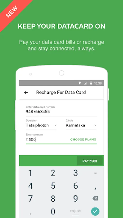 - Use saved cards to make even faster recharges and postpaid bill payments
