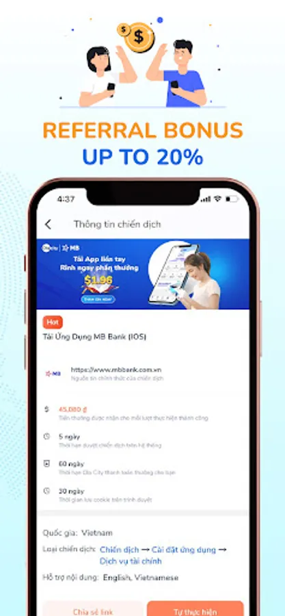 How to receive rewards: Users receive rewards from successful campaigns and withdraw money to their accounts quickly with a balance of only $5 with a variety of payment methods.