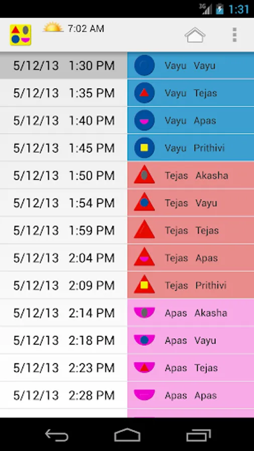 "Tattva Time" displays the current Tattva or the tattvas of any day.