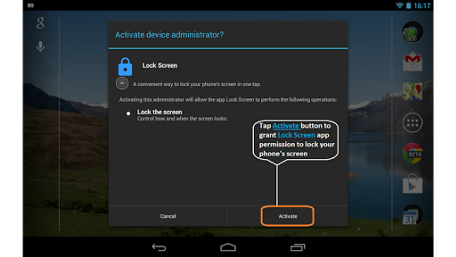 ✓ This app uses the Device Administrator permission to lock your phone's screen.