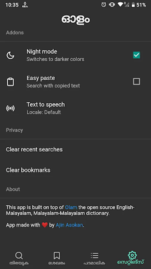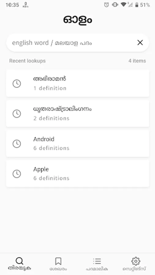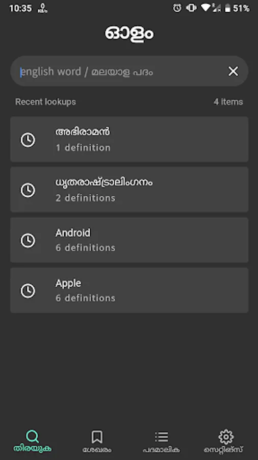 ഓളം നിഘണ്ടുവിന്റെ ആൻഡ്രോയ്ഡ് ആപ്പ്.