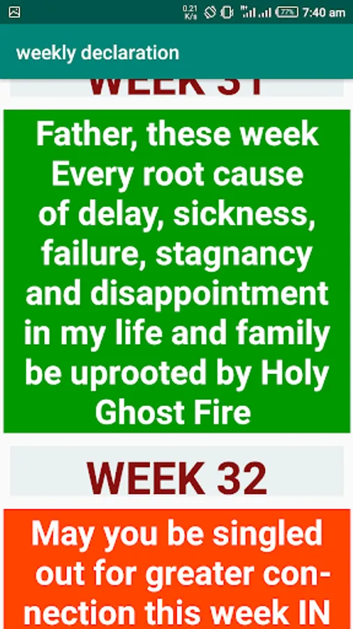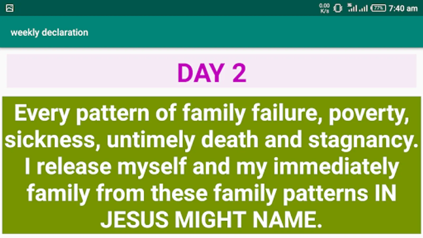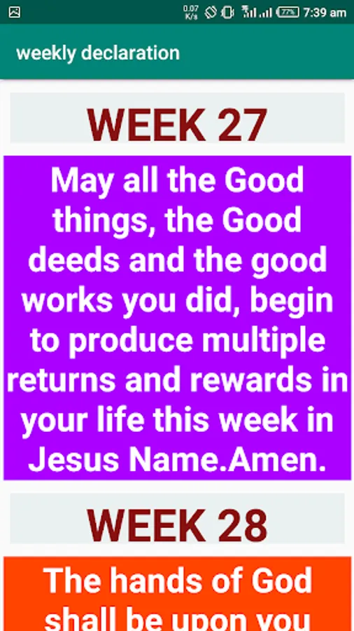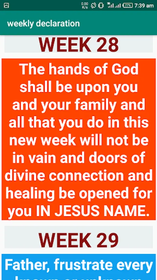 (Prayer app) Weekly declaration app also contains daily declaration for daily needs. It is time to start receive the goodness of God in your life.