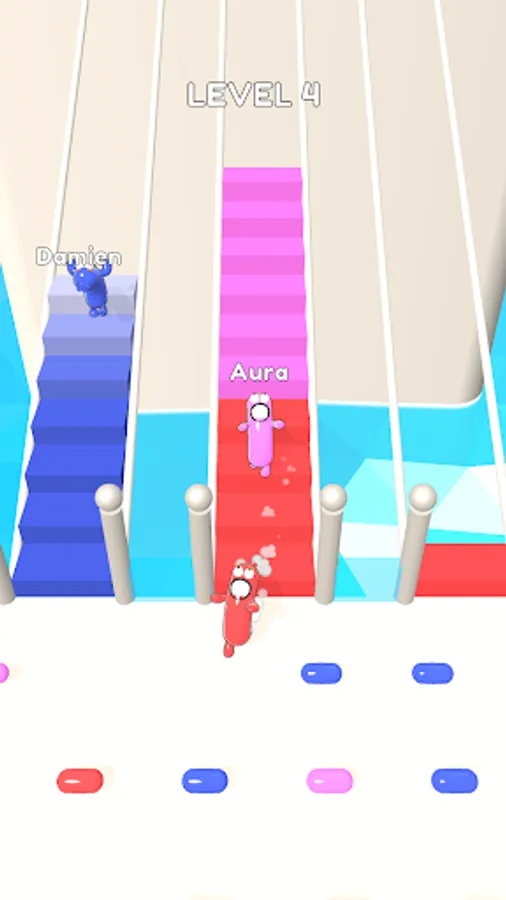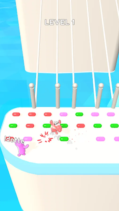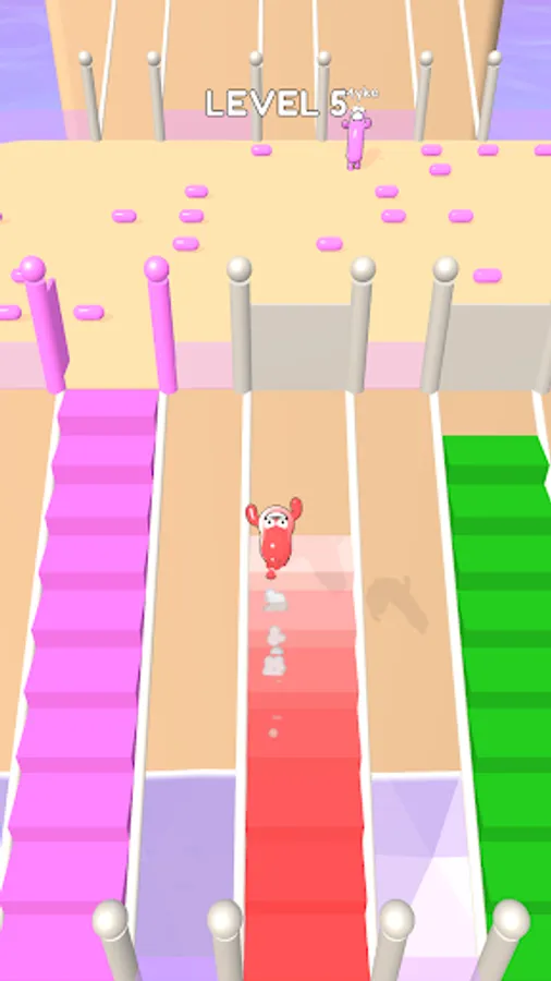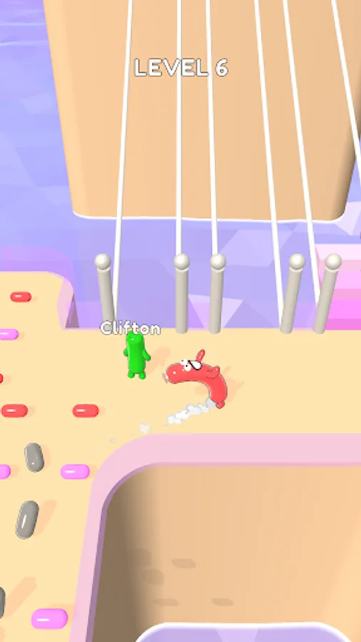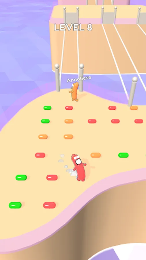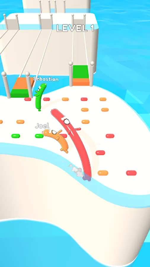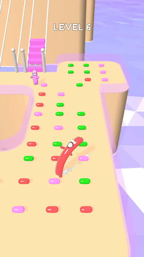 Run around collecting sausage pieces to increase in size. You can spend them to build a bridge.