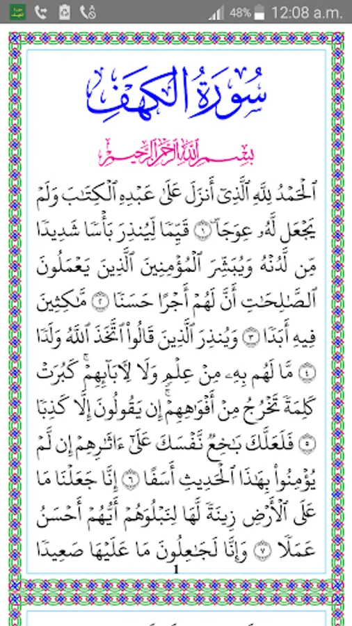 Surah Al-Kahf is written without the net, with a reminder that it was read every Friday