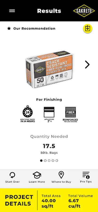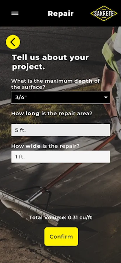 It's easy to estimate concrete for any slab or post project with the Sakrete app. Draw and visualize concrete pours using Augmented Reality for an estimated number of bags and recommended concrete type for your next project. This app can also estimate based on number of posts, post size, and hole depth.